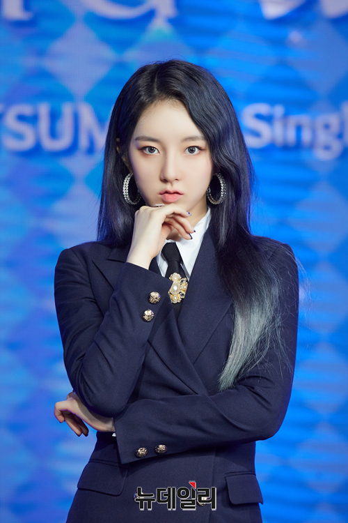걸그룹 라잇썸 멤버 주현이 13일 오후 온라인으로 진행된 두 번째 싱글 '라잇 어 위시(Light a Wish)' 발매 기념 쇼케이스에서 포즈를 취하고 있다.