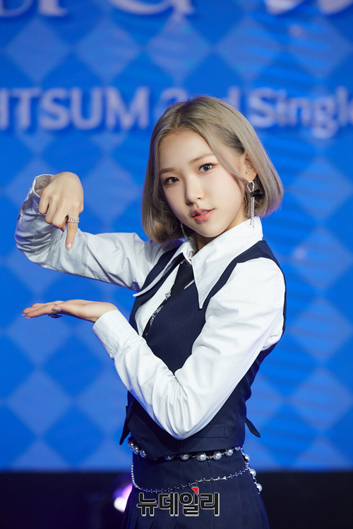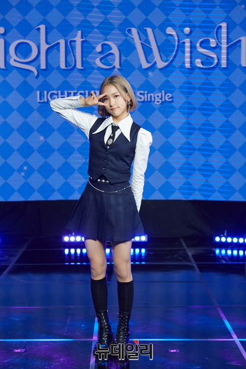 걸그룹 라잇썸 멤버 휘연이 13일 오후 온라인으로 진행된 두 번째 싱글 '라잇 어 위시(Light a Wish)' 발매 기념 쇼케이스에서 포즈를 취하고 있다.