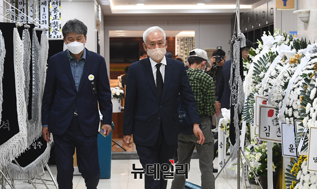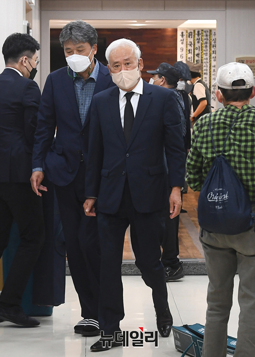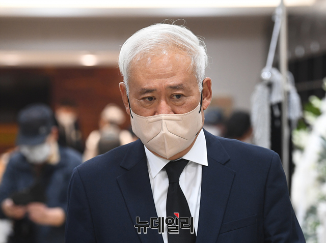 홍성열 마리오아울렛 회장이 15일 오후 서울 서초구 서울성모병원 장례식장에 마련된 고 이완구 전 국무총리의 빈소를 찾아 조문한 뒤 이동하고 있다.