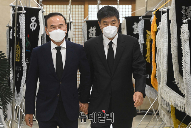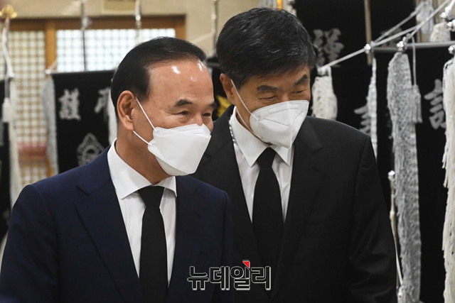 박덕흠 무소속 의원이 15일 오후 서울 서초구 가톨릭대학교 서울성모병원 장례식장에 마련된 고 이완구 전 국무총리의 빈소를 방문하고 있다.