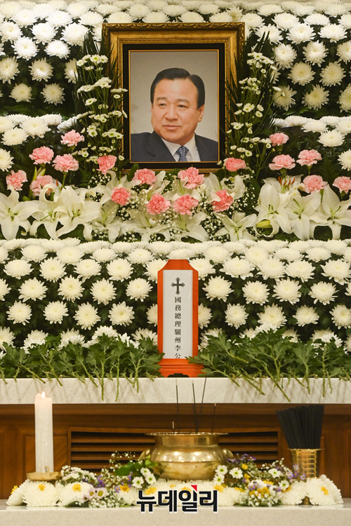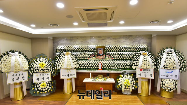 고 이완구 전 국무총리의 빈소가 마련된 15일 오후 서울 서초구 가톨릭대학교 서울성모병원 장례식장에 고인의 영정이 놓여져 있다.