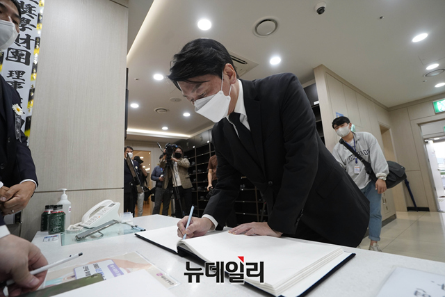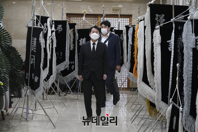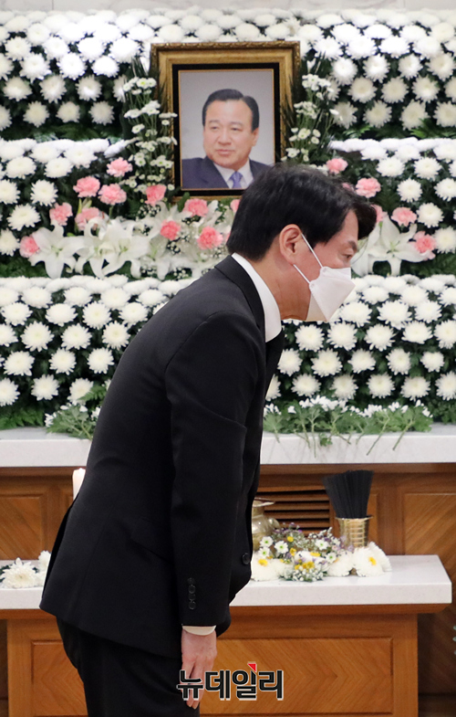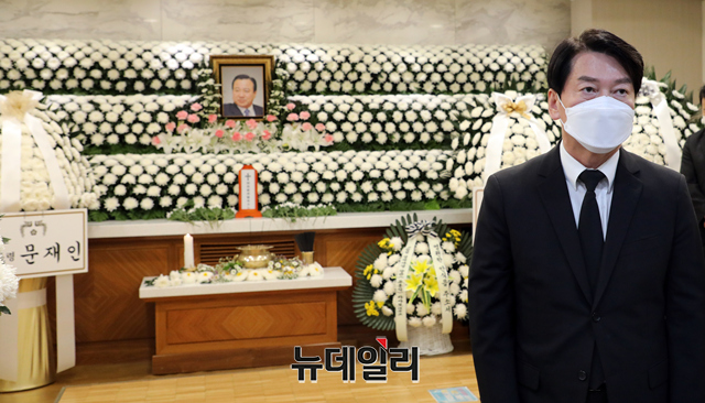 안철수 국민의당 대표가 15일 오후 서울 서초구 서울성모병원 장례식장에 마련된 고 이완구 전 국무총리의 빈소를 찾아 조문하고 있다.