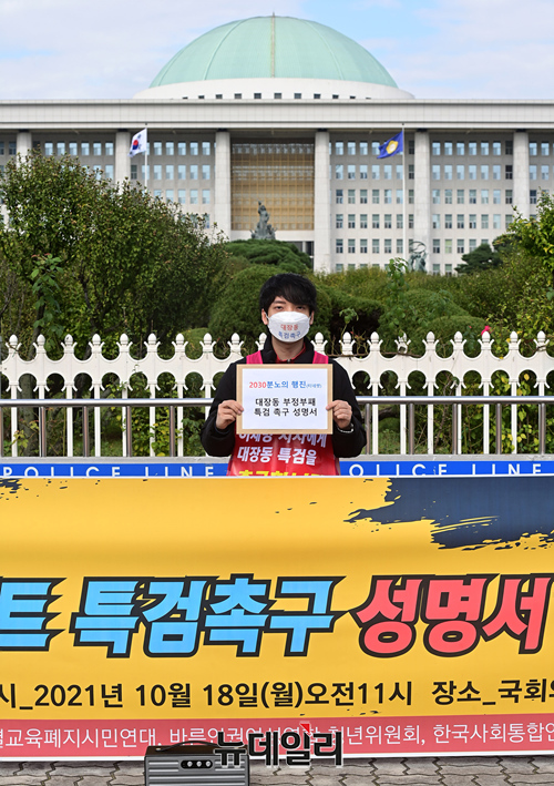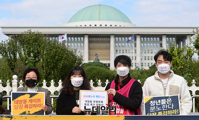 이들은 15일 경기도청을 출발해 판교 대장동과 현충원, 청와대 등을 거쳐 국회 앞까지 특검을 촉구하며 총 4일간 39km 도보행진을 이날 오전 마무리했다.