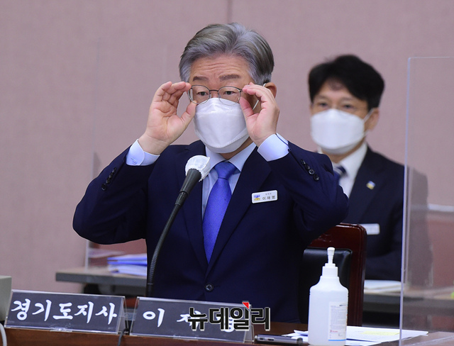 [포토] 안경 고쳐쓰는 이재명 경기지사