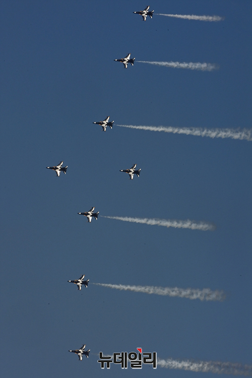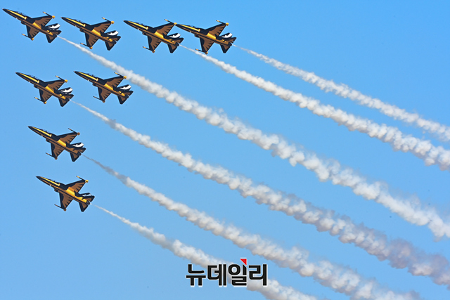 [포토] 서울 아덱스, 곡예 비행하는 블랙이글스