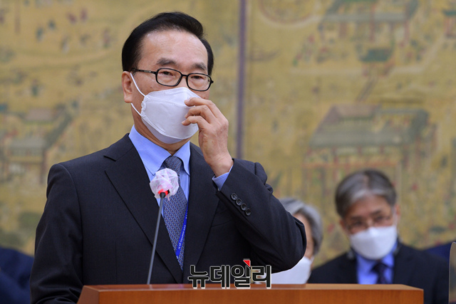 이석형 언론중재위원회 위원장이 19일 국회에서 열린 문화체육관광위원회의 한국예술종합학교, 한국언론진흥재단 등에 대한 국정감사에서 의원들의 질문에 답변하고 있다. (사진=공동취재단)