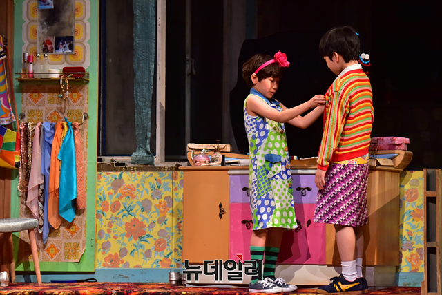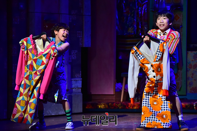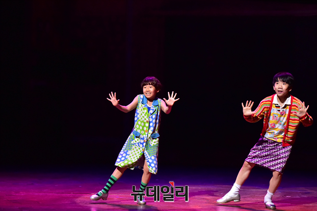 빌리 역을 맡은 이우진과 마이클 역을 맡은 성주환이 18일 오후 서울 구로구 디큐브아트센터에서 열린 뮤지컬 '빌리 엘리어트' 프레스콜에서 하이라이트 장면을 선보이고 있다.