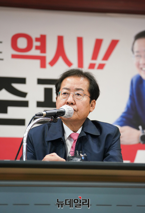 충남지역을 방문 중인 홍준표 국민의힘 대선 예비후보가 19일 충남 천안시 충남도당에서 열린 당원간담회 및 충남선대위 임명장 수여식에서 발언하고 있다. 행사에는 박찬주 공동선대위원장이 참석했다. (사진=홍준표 캠프)