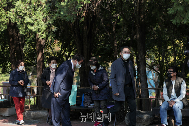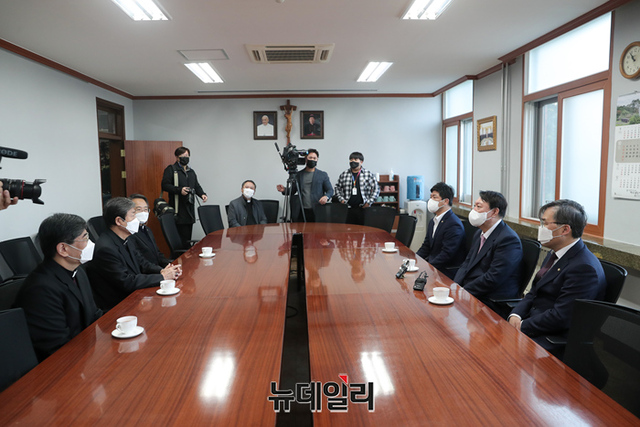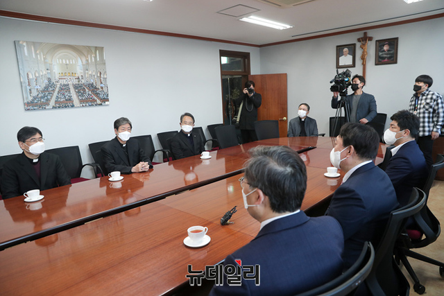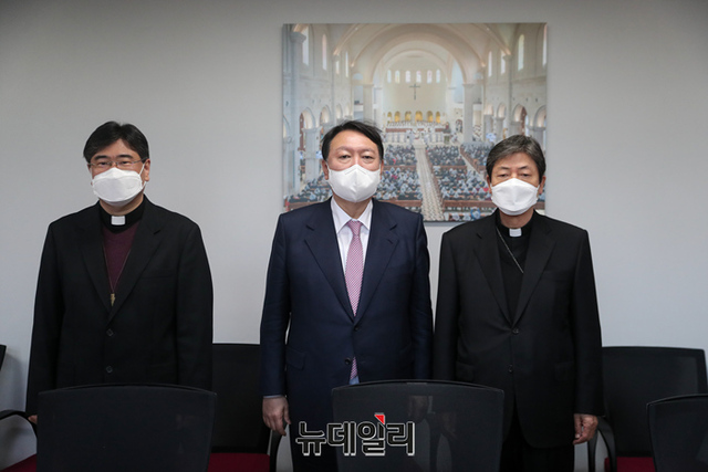 윤석열 국민의힘 대선 예비후보가 20일 오전 대구 중구 천주교 대구대교구장을 방문해 조환길 대주교를 예방하고 있다. (사진=윤석열 캠프)