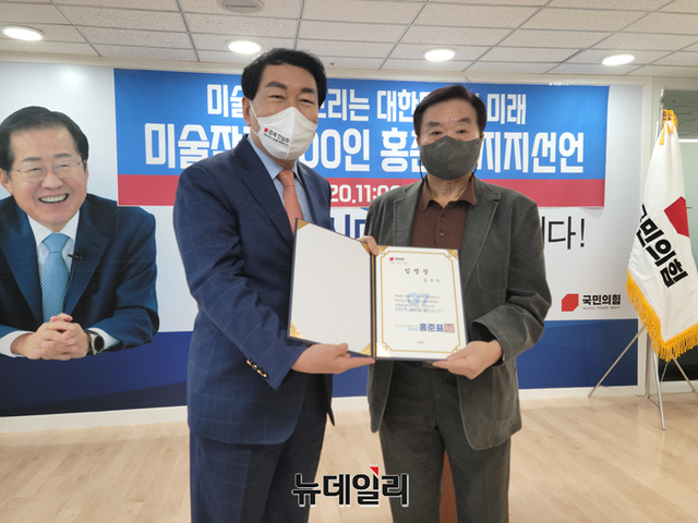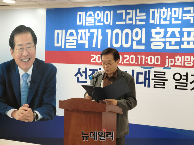 미술작가 100인이 20일 오전 서울 여의도 jp희망캠프에서 홍준표 국민의힘 대선 예비후보에 대한 지지선언을 하고 있다. (사진=홍준표)