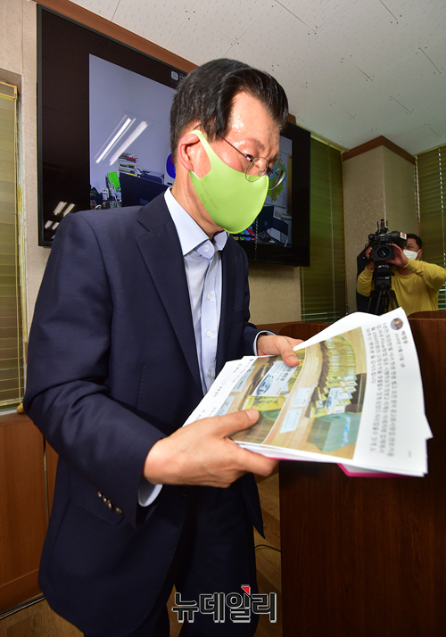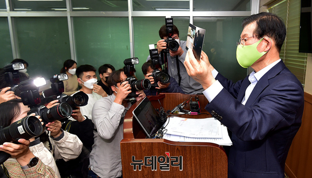 이재명 20억 상납설을 주장한 박철민 씨의 법률대리인 장영하 변호사가 20일 오후 경기 성남시 법률사무실에서 박 씨의 사실확인서를 신뢰하는 이유 등을 밝히는 기자회견을 마치고 퇴장하고 있다. (경기 성남=정상윤 기자)