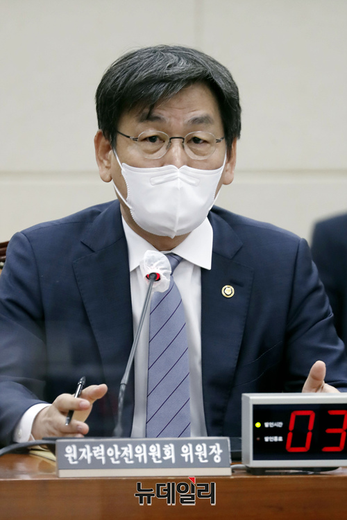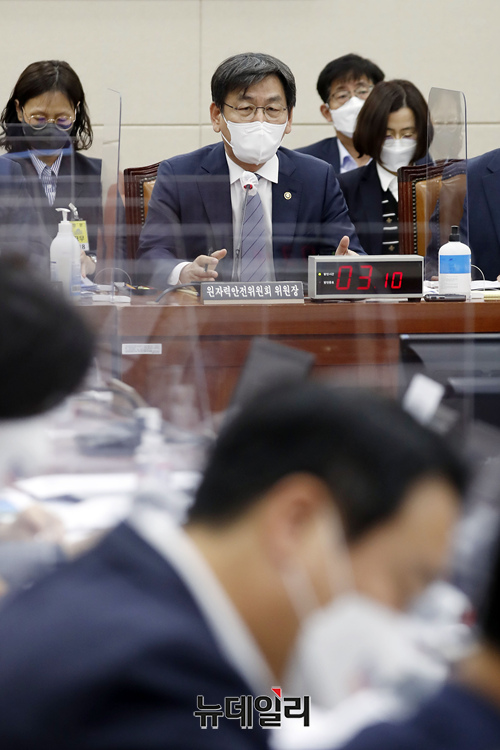 엄재식 원자력안전위원회 위원장이 21일 국회에서 열린 과학기술정보방송통신위원회의 원자력안전위원회, 한국수력원자력 등에 대한 종합감사에서 질의에 답변하고 있다. (사진=공동취재단)