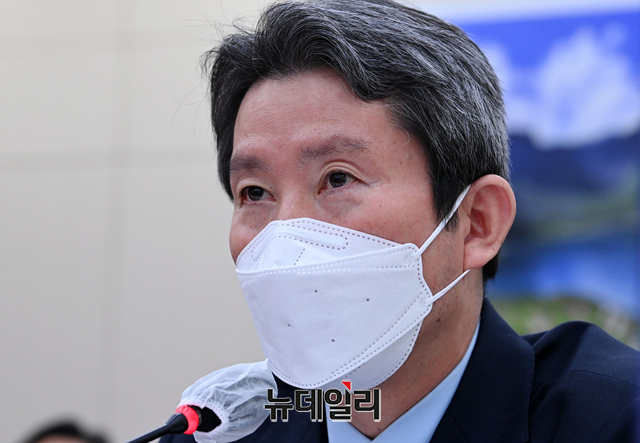 이인영 통일부 장관이 21일 국회에서 열린 외교통일위원회의 외교부, 통일부 등에 대한 종합감사에서 의원 질의에 답하고 있다. (사진=공동취재단)