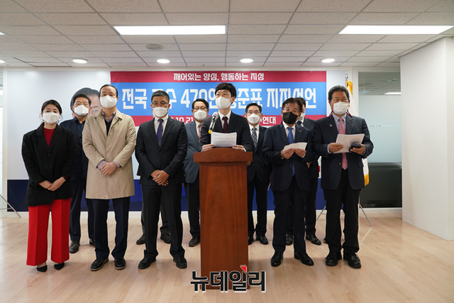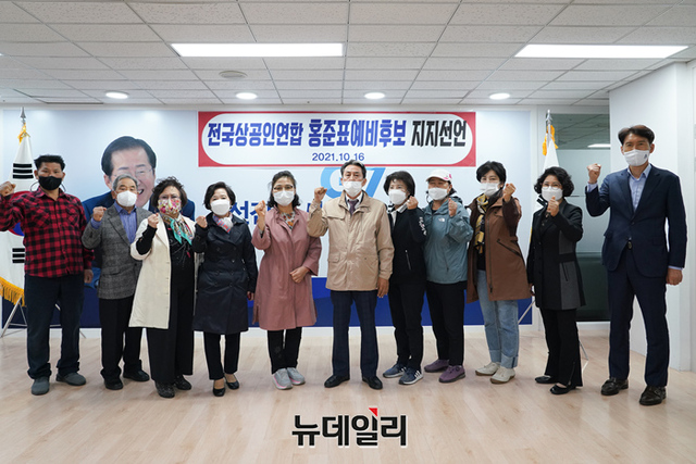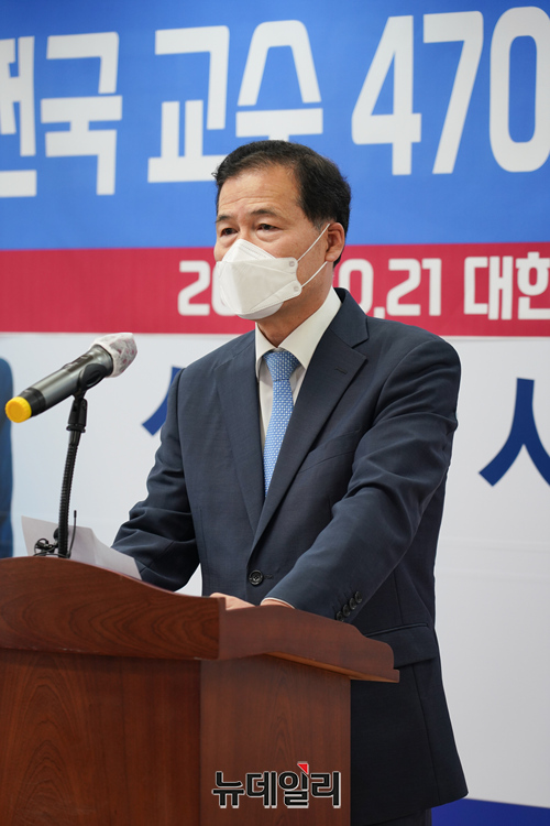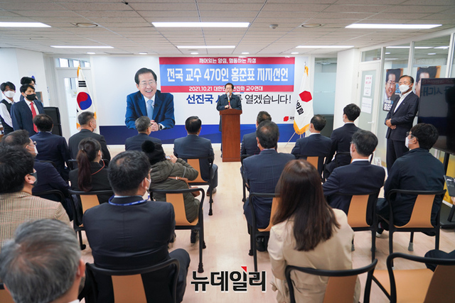 대한민국 전국 각지에서 활동하고 있는 대학교수 470명이 21일 서울 여의도 jpg희망캠프에서 홍준표 국민의힘 대선 예비후보를 지지선언하고 있다. (사진=홍준표 캠프)