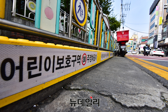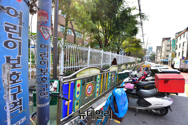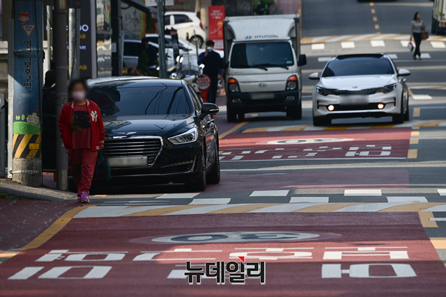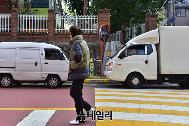 어린이 보호구역 내에 차량 주차 및 정차가 전면 금지된 21일 오후 서울 도심에 위치한 한 초등학교 인근에 차량들이 불법 주차돼 있다. 시도경찰청장이 안전표지로 허용하는 구역에서는 정해진 시간에만 어린이 승하차를 위한 주정차가 가능하다.새롭게 개정된 도로교통법은 어린이 보호구역 내에서 어린이 교통사고를 일으킨 운전자가 운전면허 정지 및 취소처분도 없이 벌점만 받아도 특별교통안전교육을 의무적으로 이수하도록 하고 있다. 또 지난 5월 어린 보호구역 내 주차 및 정차를 할 경우에 일반도로의 3배에 해당되는 과태료(승합차 13만원, 승용차 12만원)를 내도록 처벌이 강화된 바 있다.