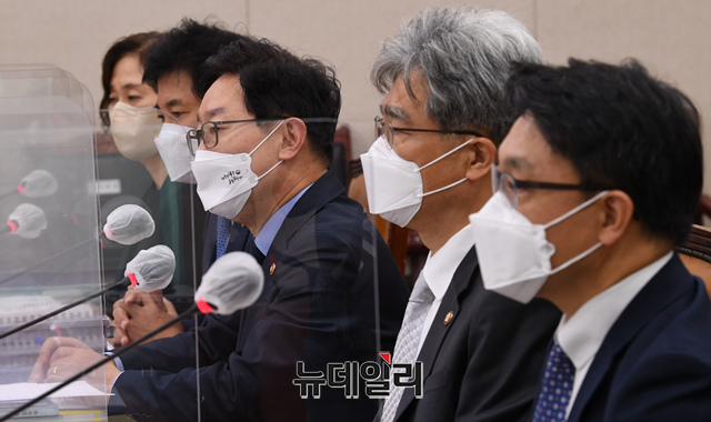 박범계 법무부장관이 21일 국회에서 열린 법제사법위원회의 감사원, 법무부, 대법원, 헌법재판소, 법제처, 공수처에 대한 국정감사에서 의원 질의에 답변하고 있다. (사진=공동취재단)