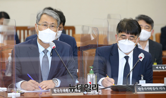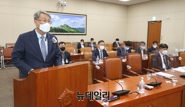 박재현 한국수자원공사 사장이 21일 오후 국회에서 열린 제9차 환경노동위원회에서 한국수자원공사 직원의 부산 에코델타시티사업 횡령사건 질의에 답하고 있다. (사진=공동취재단)