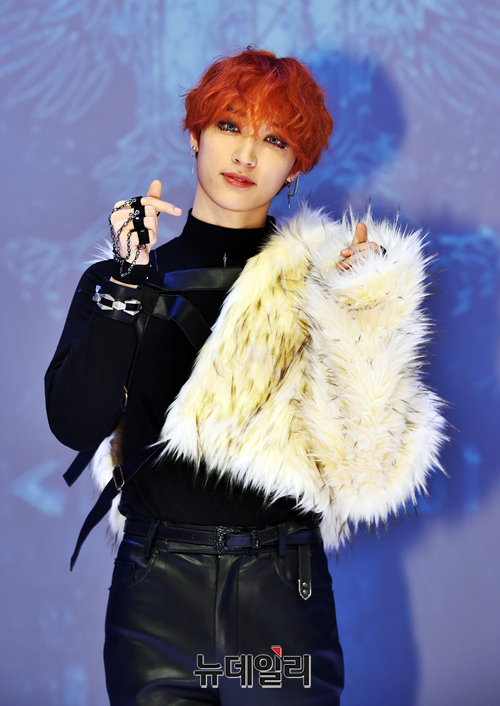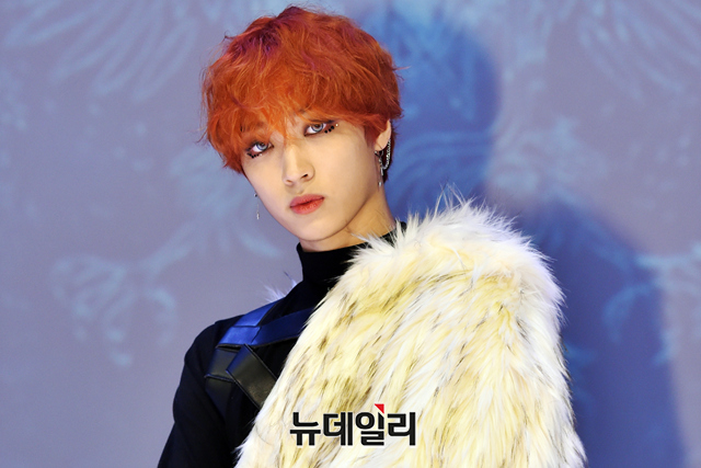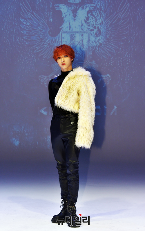 아이돌그룹 킹덤 멤버 아서가 21일 오후 온라인으로 진행된 세 번째 미니앨범 '히스토리 오브 킹덤 : 파트 3. 아이반(History Of Kingdom : Part Ⅲ. IVAN)' 쇼케이스에서 포즈를 취하고 있다.