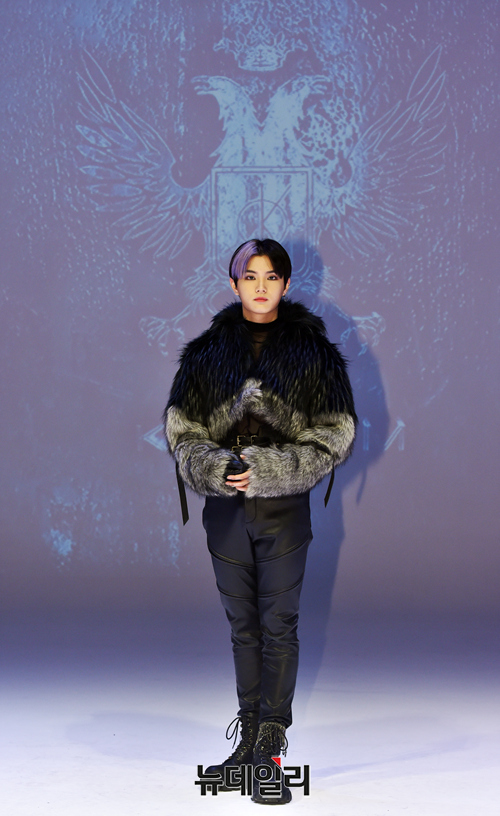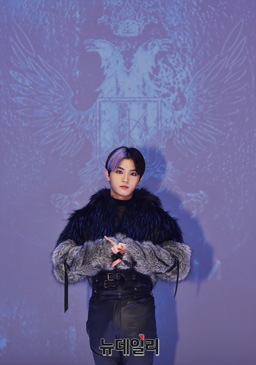 아이돌그룹 킹덤 멤버 치우가 21일 오후 온라인으로 진행된 세 번째 미니앨범 '히스토리 오브 킹덤 : 파트 3. 아이반(History Of Kingdom : Part Ⅲ. IVAN)' 쇼케이스에서 포즈를 취하고 있다.