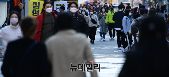 다음달 '단계적 일상회복(위드 코로나)' 전환을 앞둔 22일 오후 서울 광진구 건대로데오거리를 찾은 시민들이 이동하고 있다.
