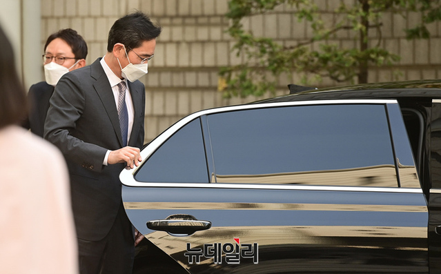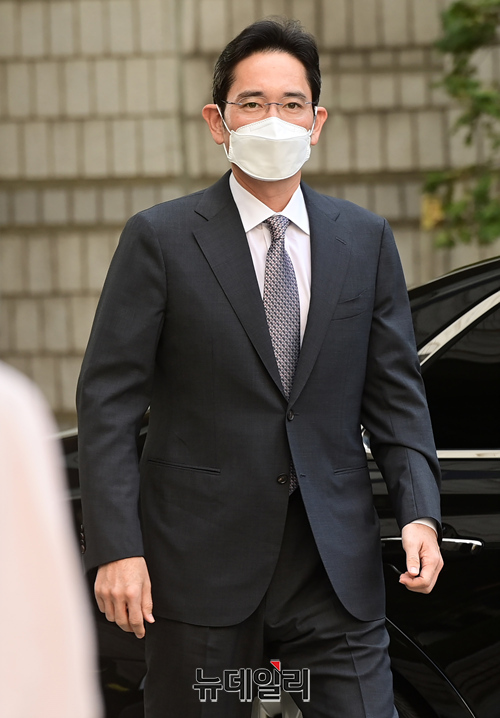 프로포폴 불법 투약 혐의로 재판에 넘겨진 이재용 삼성전자 부회장이 26일 오전 서울 서초구 서울중앙지법에서 열린 선고공판에 입장하고 있다. 법원은 이 부회장에게 벌금 7천만 원을 선고했다.