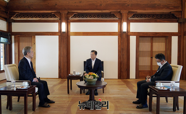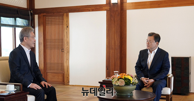 [포토] 청와대서 만난 문재인 대통령·이재명 민주당 대선 후보