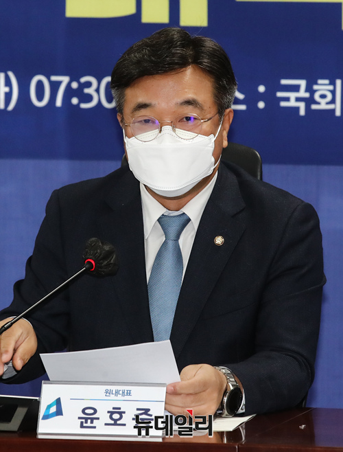 윤호중 더불어민주당 원내대표가 26일 오전 국회 의원회관에서 열린 물가안정 대책 당정협의에서 모두발언 하고 있다. (사진=공동취재단)