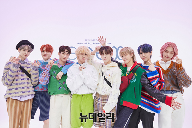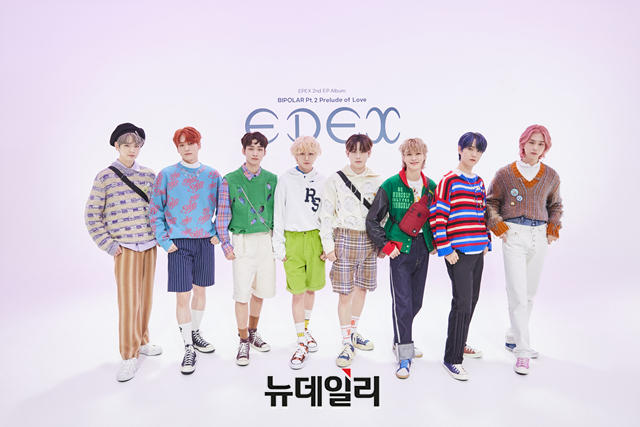 아이돌그룹 이펙스(뮤, 위시, 제프, 에이든, 금동현, 아민, 예왕, 백승(왼쪽부터))가 26일 오후 온라인으로 진행된 두 번째 EP 앨범 '양극성(Bipolar) Pt.2 사랑의 서' 발매 기념 쇼케이스에서 포즈를 취하고 있다.타이틀곡 '두 포 미(Do 4 Me)'는 첫사랑에 빠진 소년의 복잡한 감정과 당돌한 고백을 표현한 곡이다. 러브 바이러스, 브레스테이킹, 지구별 여행자까지 총 4곡이 수록됐다. 오후 6시 각종 음원 사이트 공개된다. (사진=C9엔터테인먼트)
