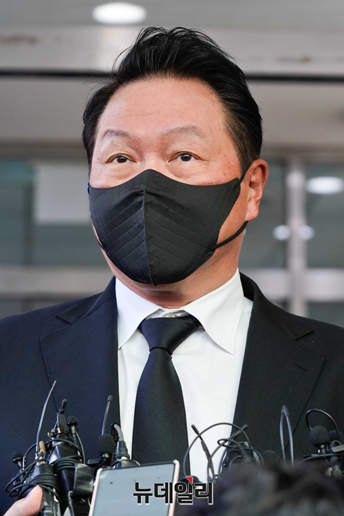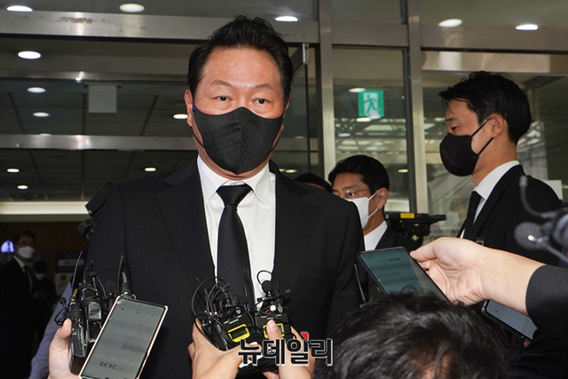 노태우 전 대통령이 향년 89세를 일기로 별세한 가운데 27일 빈소가 마련된 서울대병원 장례식장에 최태원 SK그룹 회장이 조문을 위해 도착하고 있다. (사진=공동취재단)