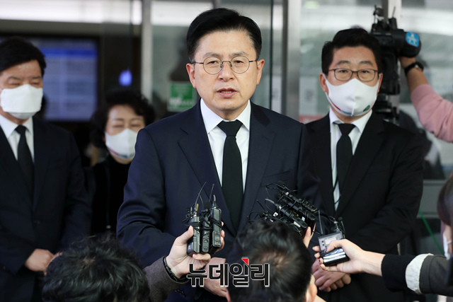 황교안 전 미래통합당 대표가 27일 서울 종로구 서울대병원 장례식장에 마련된 고 노태우 전 대통령의 빈소를 찾아 조문을 마친 뒤 취재진 질문에 답하고 있다. (사진=공동취재단)