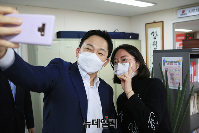 원희룡 국민의힘 대선 예비후보가 27일 오전 강원 춘천시 국민의힘 강원도당을 방문해 기자간담회를 갖고 있다. 원 후보는 오후 4시부터 강원 합동토론회에 참석할 예정이다. (사진=원희룡 캠프)