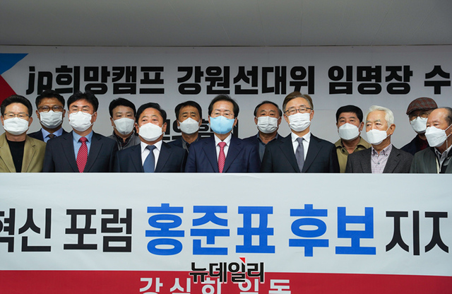 [포토] 국민의힘 강원도당 찾아 지지호소하는 홍준표