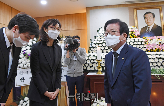 [포토] 노태우 전 대통령 유족과 대화 나누는 박병석 국회의장
