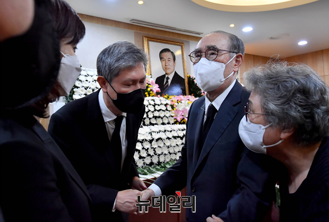 [포토] 노 전 대통령 유족들 위로하는 이홍구 전 국무총리