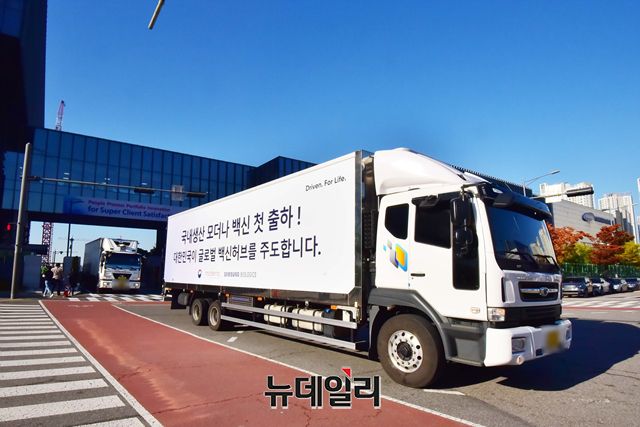 [포토] 삼성바이오로직스 위탁생산 모더나 백신 첫 출하...국내 첫 공급