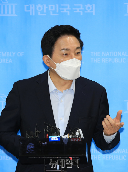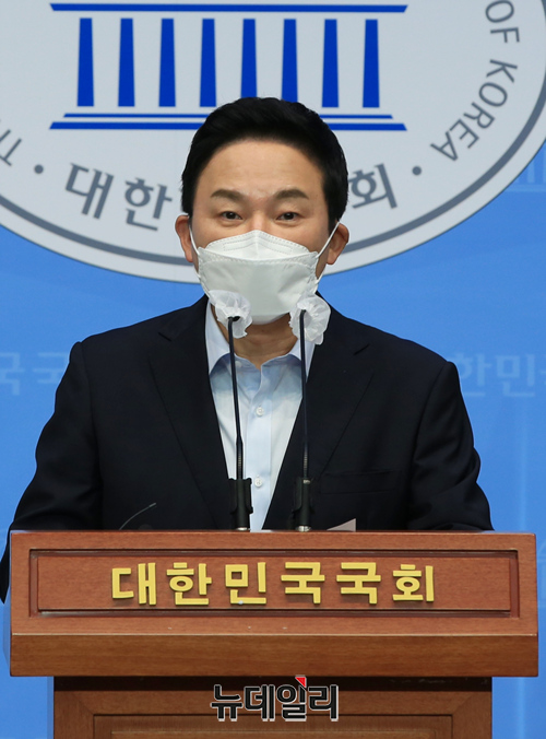 원희룡 국민의힘 대선 예비후보가 28일 오전 국회소통관에서 유한기 전 성남도시개발공사 개발사업본부장 금품수수 제보에 따른 수사 촉구 기자회견을 갖고 있다. (사진=원희룡 캠프)