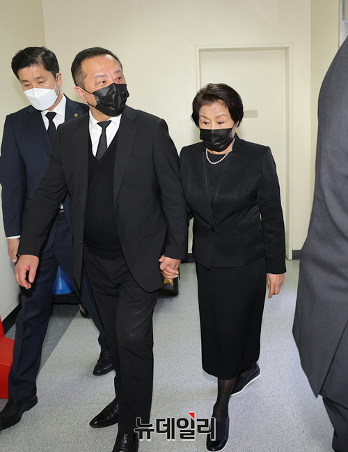 • 전두환 전 대통령의 부인 이순자 여사가 28일 서울 종로구 서울대병원 장례식장에 마련된 노태우 전 대통령 빈소를 찾아 조문을 마치고 이동하고 있다. (사진=공동취재단)