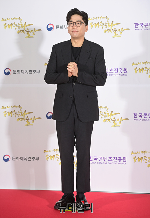 가수 이적이 28일 오후 서울 중구 국립극장 해오름극장에서 열린 '2021 대한민국 대중문화예술상 시상식'에 입장하고 있다.올해 12회를 맞은 대중문화예술상 시상식은 가수, 배우, 희극인, 성우, 방송작가, 연주가 등 다양한 분야를 아우르는 대중문화예술인들의 자긍심을 고취하기 위해 마련된 시상식이다.문화예술 공로자에게 주는 최고 훈장인 금관문화훈장은 영화 미나리의 배우 윤여정이 수훈자로 선정됐다.대통령 표창에는 △연기자 김영철 △배우 정우성 △가수 김연자 △가수 이적 △김태호PD △작가 박재범 △성우 최수민 등이 이름을 올렸다.시상식은 오후 6시부터 콘진원과 더케이팝 유튜브 채널을 통해 생중계 된다.