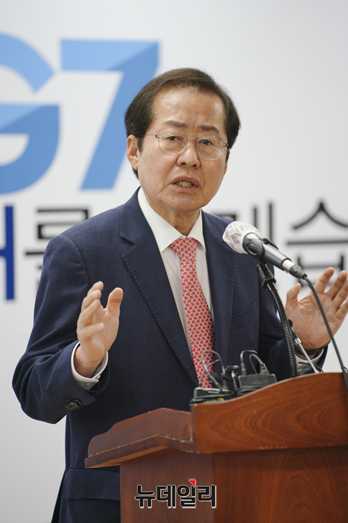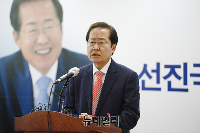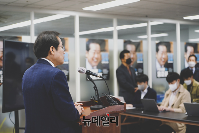 홍준표 국민의힘 예비후보가 28일 오후 서울 여의도 jp희망캠프에서 열린 '현안질의 기자간담회'에 참석해 발언을 하고 있다. (사진=홍준표 캠프)