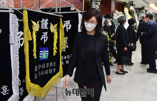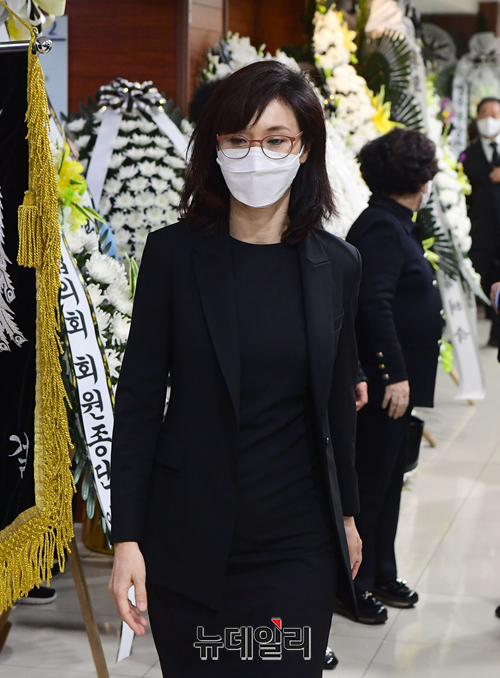 노소영 아트센터 나비 관장이 28일 오후 서울 종로구 서울대병원 장례식장에서 입관식을 마치고 노태우 전 대통령 빈소로 향하고 있다. (사진=공동취재단)
