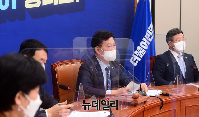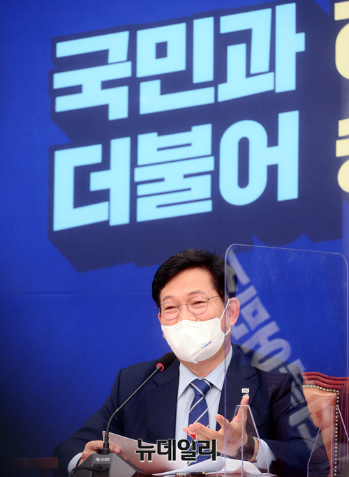송영길 더불어민주당 대표가 29일 오전 국회에서 열린 최고위원회의에서 모두발언을 하고 있다. (사진=공동취재단)