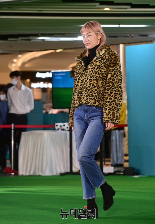 모델 송해나가 29일 오전 서울 송파구 롯데백화점 잠실점 트레비광장에서 열린 '코리아패션마켓 시즌4' 개막식에서 친환경 업사이클링 패션 상품으로 패션쇼를 선보이고 있다.