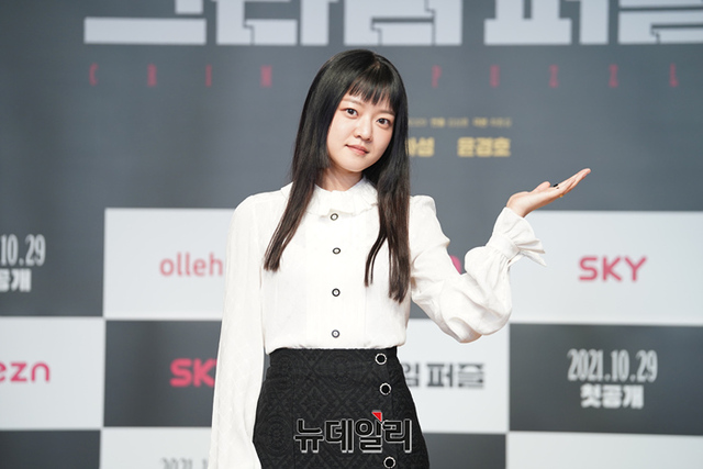 배우 고아성이 29일 오전 온라인으로 열린 olleh tv X seezn 오리지널 '크라임 퍼즐(연출 김상훈, 극본 최종길)' 제작발표회에서 포토타임을 갖고 있다.