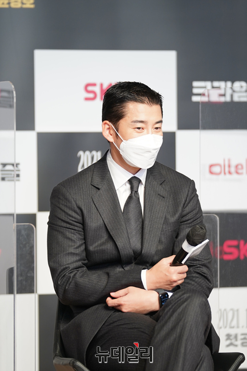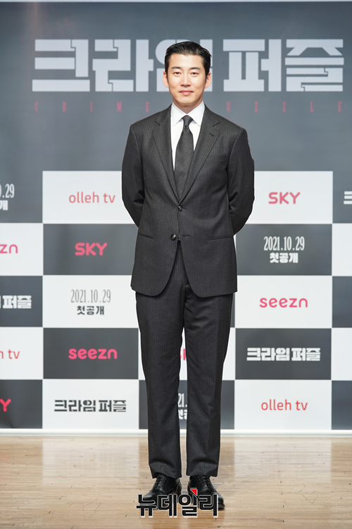 배우 윤계상이 29일 오전 온라인으로 열린 olleh tv X seezn 오리지널 '크라임 퍼즐(연출 김상훈, 극본 최종길)' 제작발표회에서 포토타임을 갖고 있다.