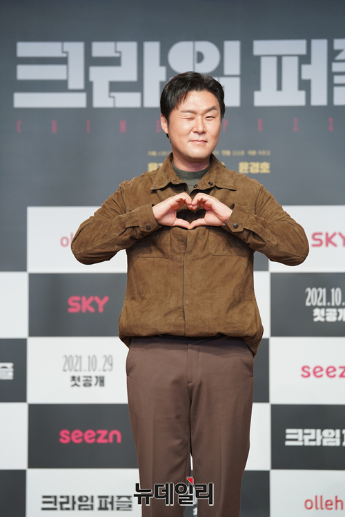 배우 윤경호가 29일 오전 온라인으로 열린 olleh tv X seezn 오리지널 '크라임 퍼즐(연출 김상훈, 극본 최종길)' 제작발표회에서 포토타임을 갖고 있다.