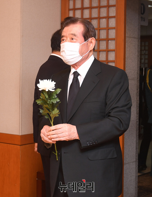 한광옥 전 청와대 비서실장이 29일 오후 서울 종로구 서울대병원 장례식장에 마련된 노태우 전 대통령 빈소에서 조문을 하고 있다. (사진=공동취재단)