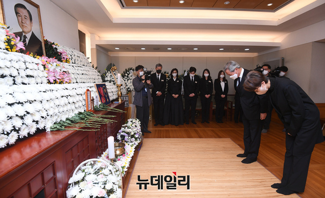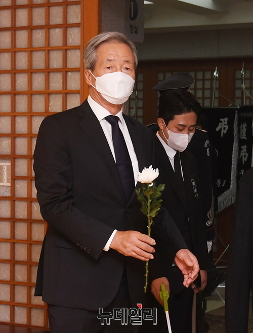 정몽준 아산재단 이사장이 29일 서울 종로구 서울대병원 장례식장에 마련된 노태우 전 대통령 빈소를 찾아 조문을 하고 있다. (사진=공동취재단)