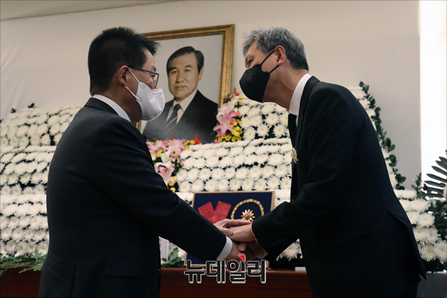 [포토] 노태우 전 대통령 빈소 조문하는 박지원 국정원장