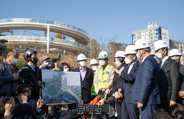 [포토] 성남 제1공단 근린공원 조성현장 찾은 이재명 후보