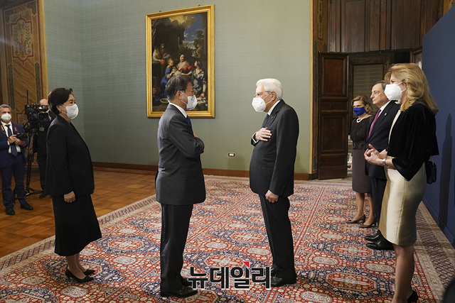 [포토] 인사나누는 文 대통령과 세르지오 마타렐라 이탈리아 대통령